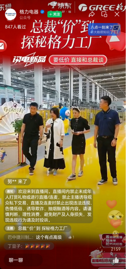 事实上,笔据格力电器官方平台发布的直播预报,就在与这次功绩讲明会举办的归拢时刻(6月14日15:00至17:00),董明珠现身成齐,与京东集团副总裁李帅共同开启直播行为。e公司记者点开有关直播页面,也如实看到了董明珠现场参与直播的情形。