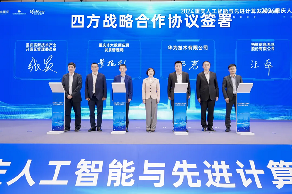 值此全面鼓励数字重庆基本智商建立的要害时刻,重庆市大数据应用发展管束局、重庆高新手艺产业开荒区管束委员会、华为手艺有限公司、拓维信息系统股份有限公司厚爱签署四方计谋协作契约,各方将充分整联合源、上风互补,充分弘扬华为公司、拓维信息在硬件、软件根手艺和生态资源等上风,共同加速鼓励鲲鹏、昇腾、开源鸿蒙等产业生态在重庆的落地,并在场景怒放、应用创新、东谈主才培养、软件手艺服务等方面真切协作、共同发展,助力数字重庆建立。